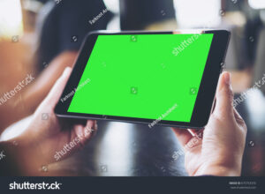 stock-photo-mockup-image-of-woman-s-hand-holding-black-tablet-pc-with-blank-green-screen-in-cafe-with-blur-675753370